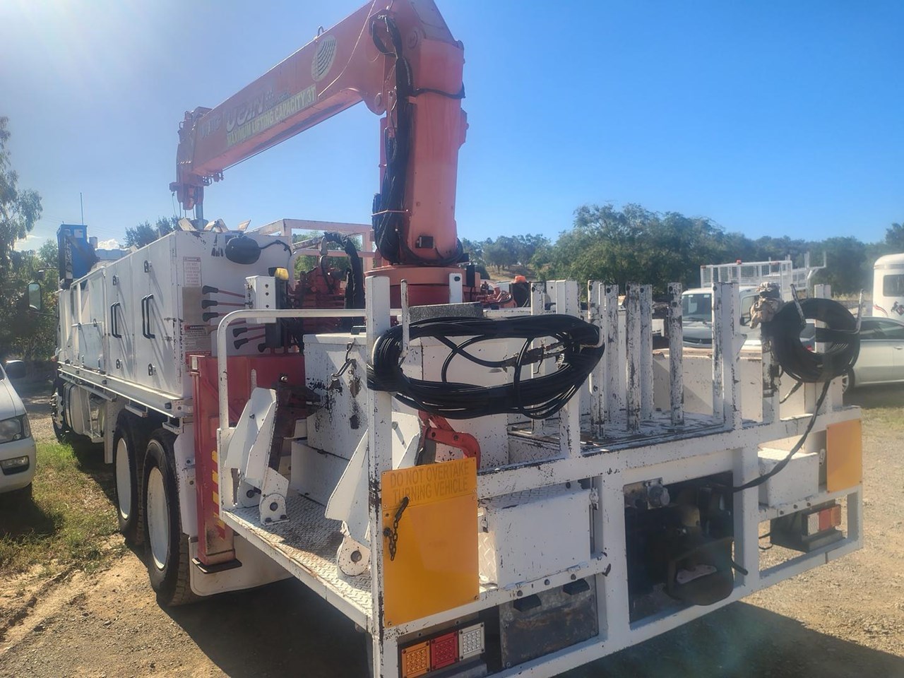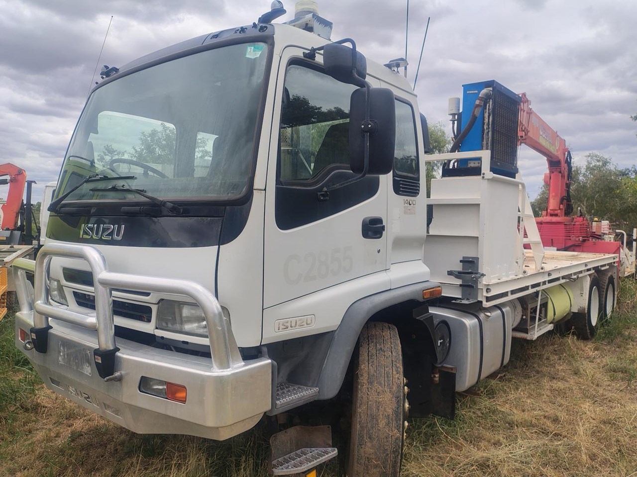 2007 Isuzu FVZ 1400 Crane Truck, 6x4 Manual Transmission, very low original kms, Unic 3t crane which has barely been used, extendable boom with running rope, very clean and tidy truck, ex corporate truck, well maintained, Ring feeder tow hitch with air brakes for trailer. Tool boxes can be removed to make a flat tray truck.