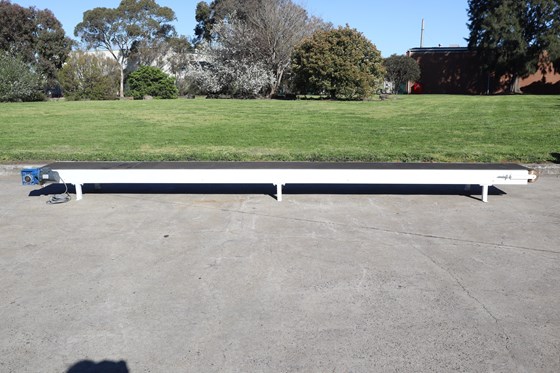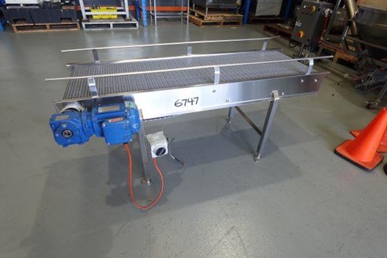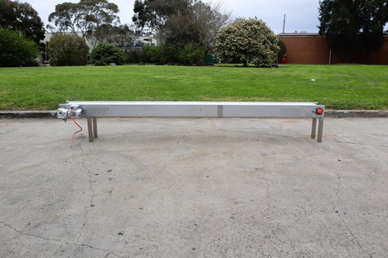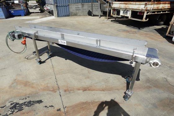 STAINLESS STEEL MOTORISED BELT CONVEYOR 3.85M LONG